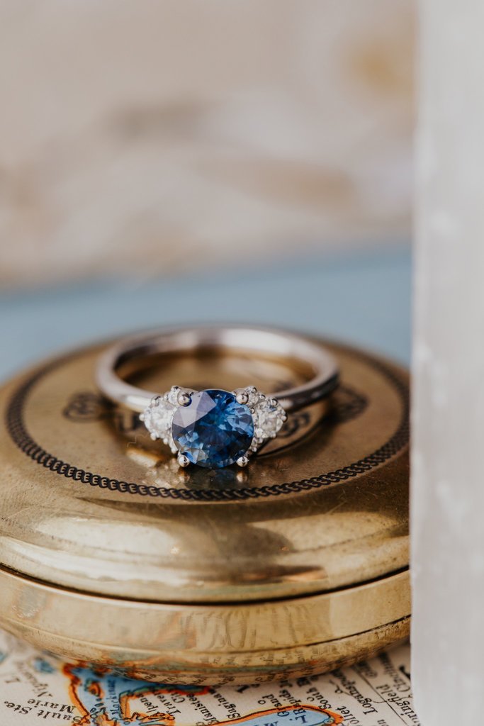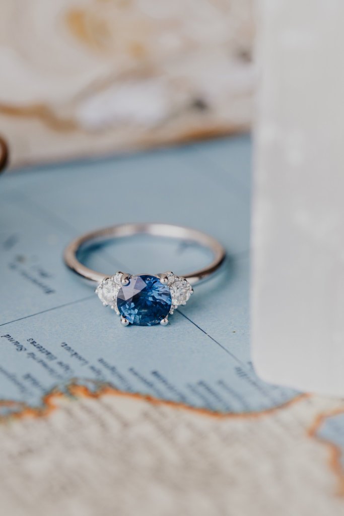- Sapphire: 1.31 ct Round Montana Blue Sapphire (Prong Set)