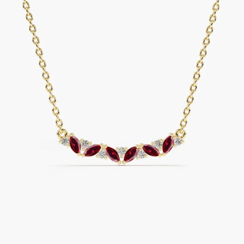 With a total ruby carat weight of 0.26 ctw and dimensions of 3.5 x 7 mm, this necklace strikes the perfect balance between understated elegance and eye-catching glamour. Its simple and classic design makes it suitable for everyday wear, adding a touch of sophistication to casual outfits, while its undeniable allure also makes it ideal for special occasions when you want to make a statement.