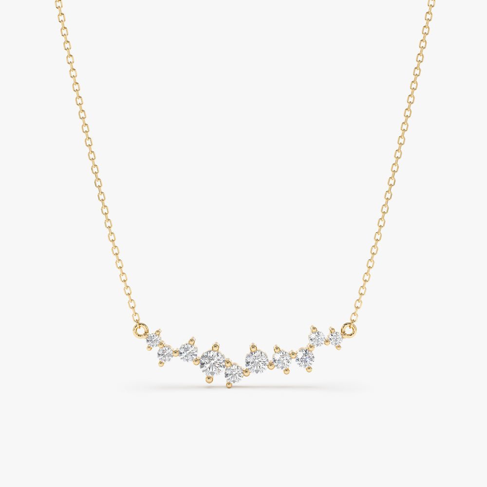 Handcrafted with care, this exquisite necklace boasts a cluster of round natural diamonds, set in a radiant display of brilliance. Crafted from 14k yellow gold, with options available in white or rose gold, the necklace exudes luxury and versatility.
