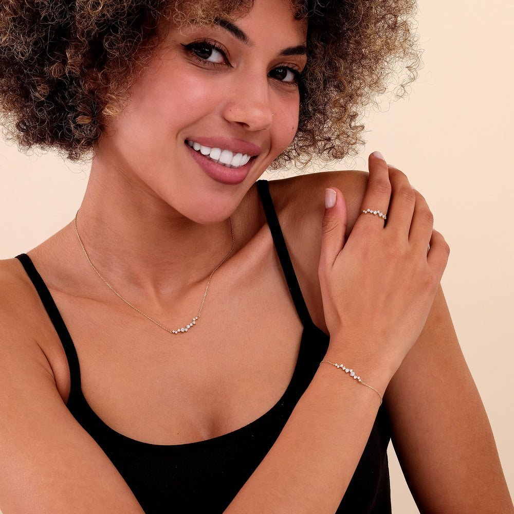 Indulge in timeless elegance with our Solid Gold Diamond Cluster Necklace, a sophisticated addition to your jewelry collection.