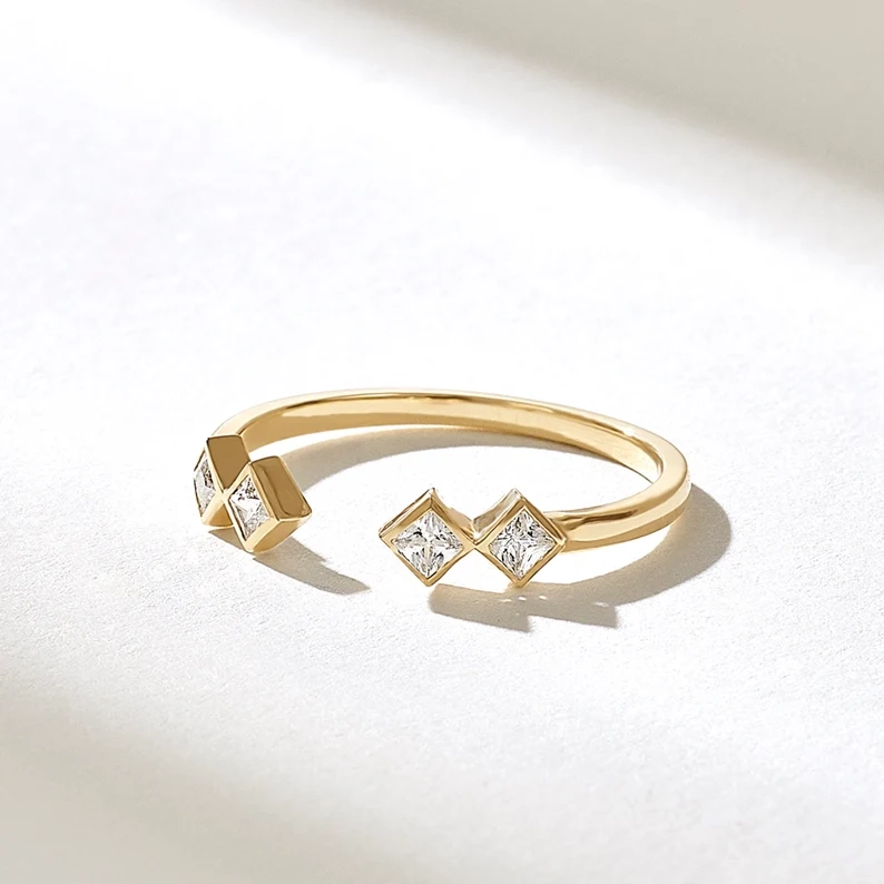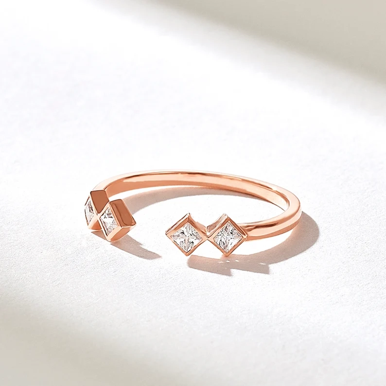 - Product Name:Â Diamond Open Bezel Squares Ring | Princess Cut Diamond Ring | Open Wedding Band