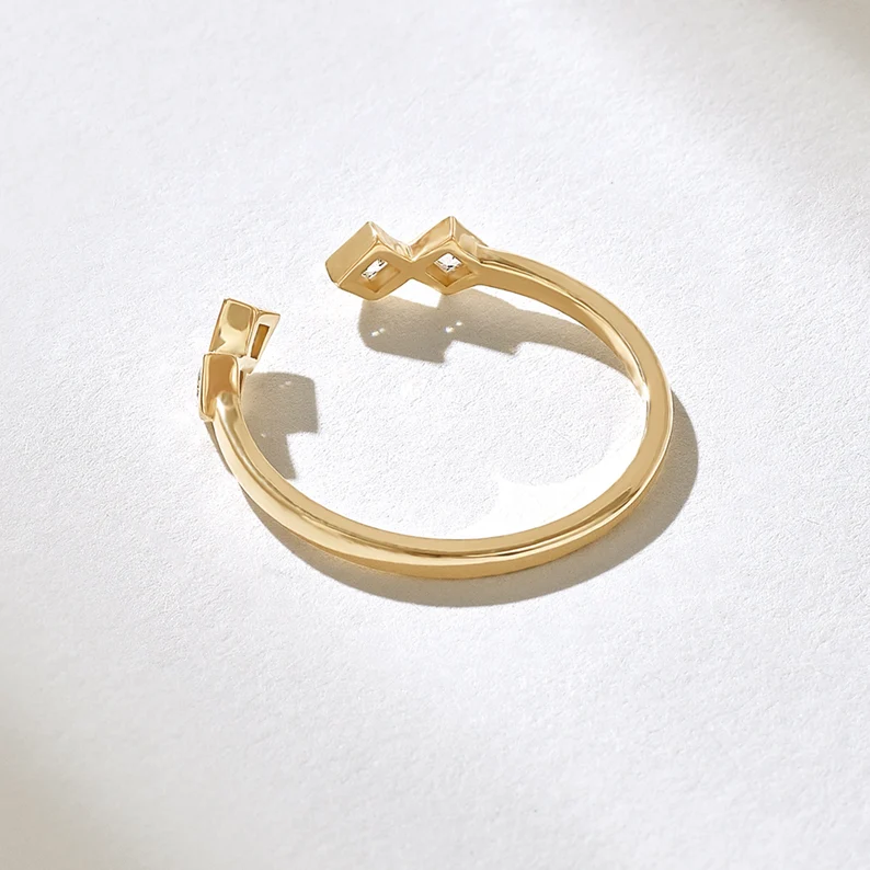 14K gold open ring with bezel-set princess cut diamonds (0.20ct). GH color, VS-SI clarity. GIA-certified, BIS hallmarked, sleek and modern.