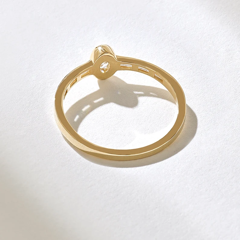 14K Solid Gold Baguette Natural Diamond Dome Ring