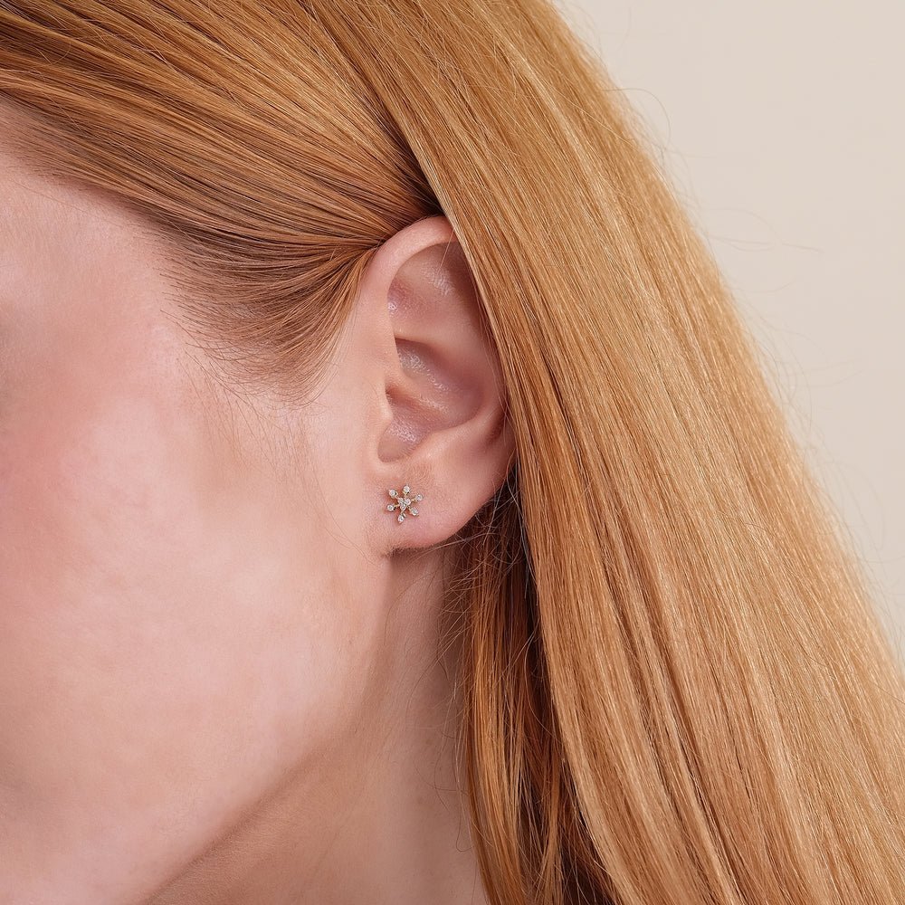 Embrace winter’s whimsy with our Diamond Snowflake Stud Earrings. Handmade in solid gold, featuring charming snowflake designs accentuated with petite diamonds.