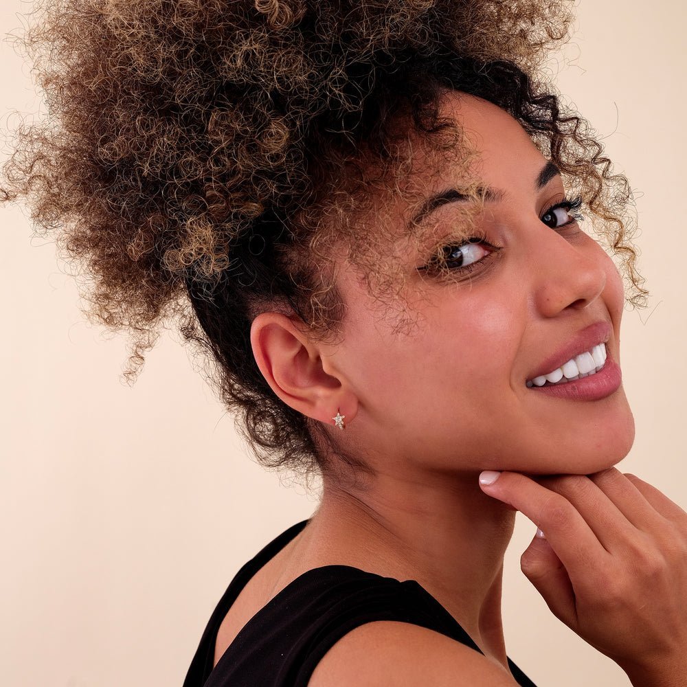 Illuminate your style and embrace celestial elegance with our Natural Diamond Star Huggies, a symbol of timeless beauty and enchantment.