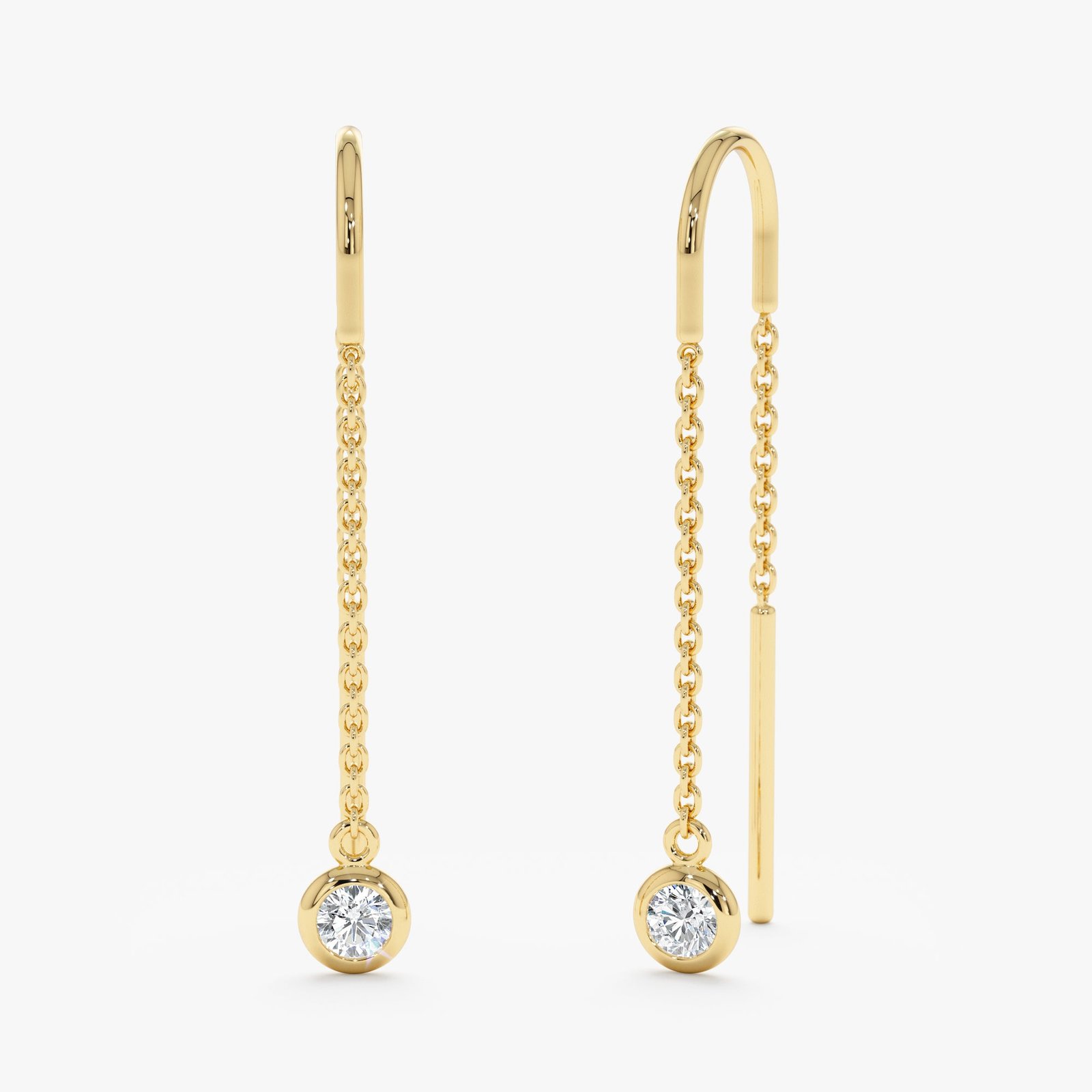 Each earring features a single dazzling diamond suspended from a delicate threader design, creating a graceful and contemporary aesthetic. The threader design allows for effortless wear, ensuring a comfortable and secure fit throughout the celebration.