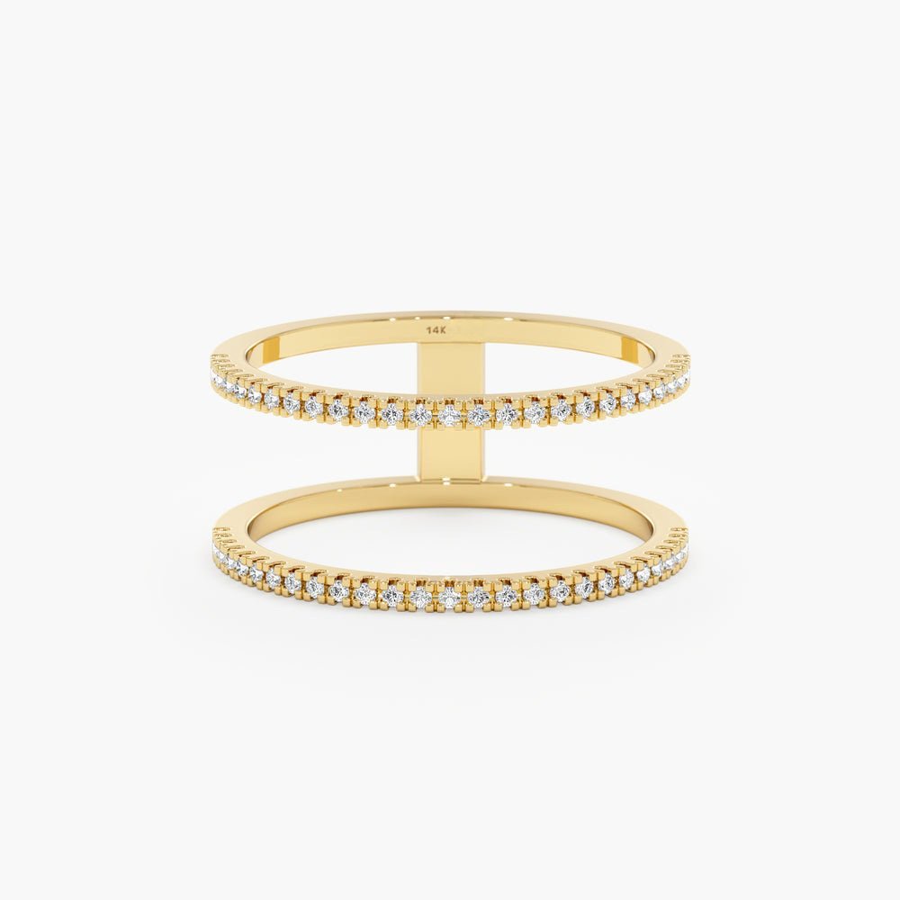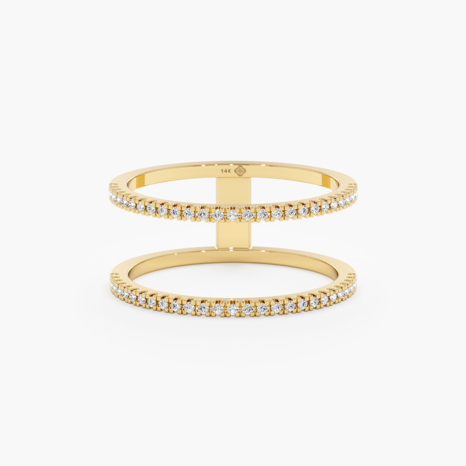 14K Gold Double Line Ring with 0.14 ctw Natural Diamonds. Sleek, open-band design with contemporary elegance.