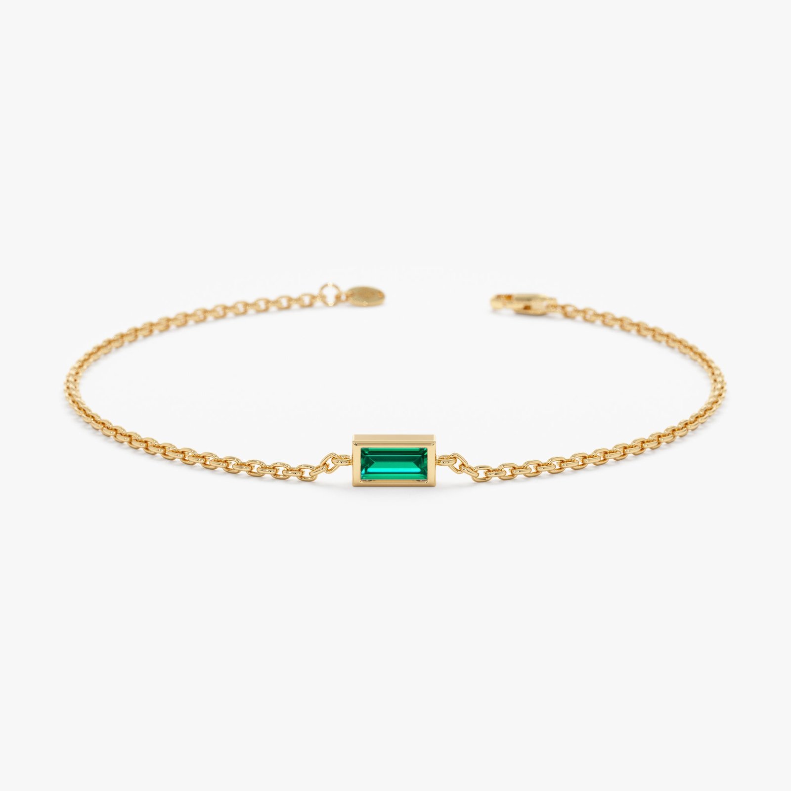 The bracelet features a delicate chain that adds a touch of elegance to the design while ensuring comfortable wear throughout the day. Whether worn alone as a statement piece or layered with other bracelets for a more personalized look, our Emerald Birthstone Bracelet is sure to become a cherished addition to your jewelry collection.