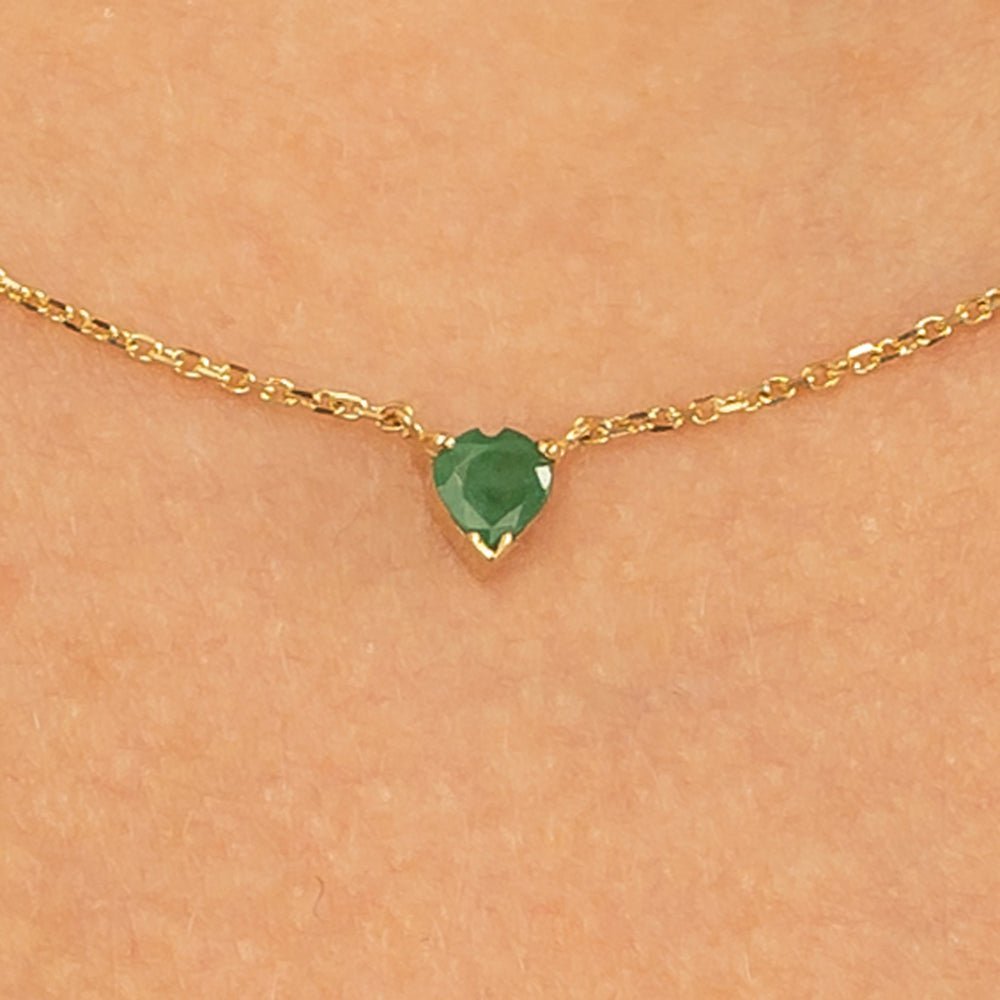 A romantic 14K solid gold necklace featuring a heart-shaped emerald, offering a timeless and elegant design perfect for any special occasion.