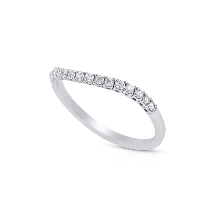 Delicate 14K solid gold curved diamond ring with 0.06ct GH/VS-SI diamonds. Perfect for stacking or as a contoured wedding band.