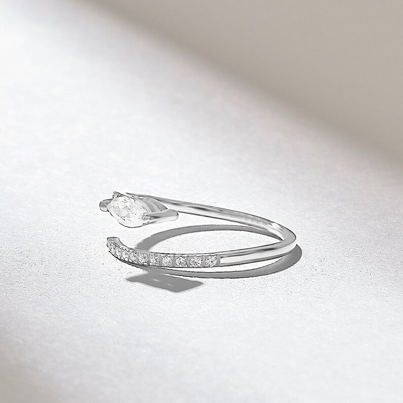 With a top band width of 6.36 mm, band width of 1.07 mm, and thickness of 1.02 mm, the ring is lightweight yet eye-catching—perfect for stacking with other favorites or wearing solo as a refined statement piece. The bypass setting not only delivers an organic, fluid design but also offers a snug, comfortable fit for daily wear.