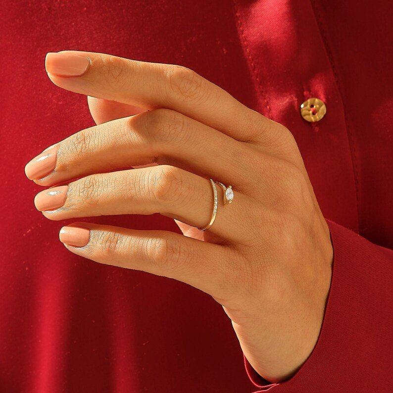 Marquise Cut Natural Diamond Bypass Ring | 0.4CT Wrap Around Ring in Solid Gold