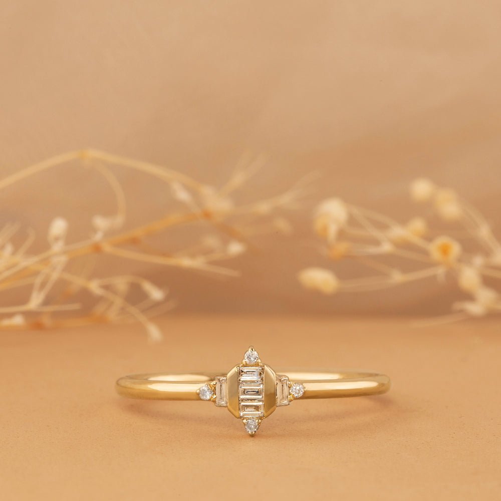 14K Solid Gold Minimalist Natural Diamond Art Deco Ring