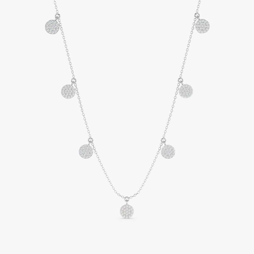 Each gold disk boasts a polished finish, adding a touch of luxurious shine to the necklace. The contrast between the gleaming gold and the sparkling diamonds creates a mesmerizing effect that catches the light from every angle, ensuring that this necklace will turn heads wherever you go.