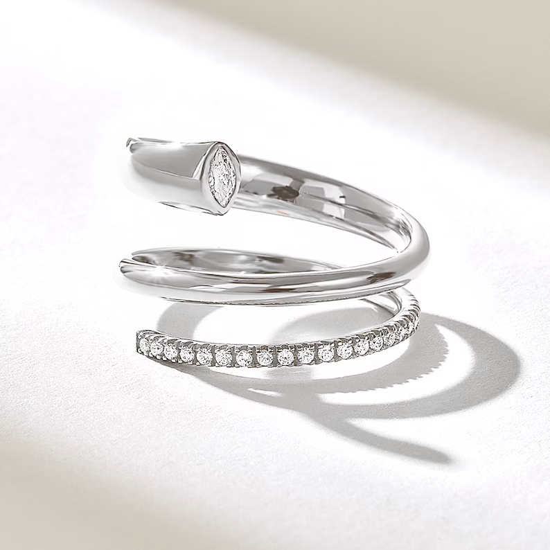 Product Name: Pave Diamond Bold Spiral Ring | Unique Wrap Around Statement Ring for Women