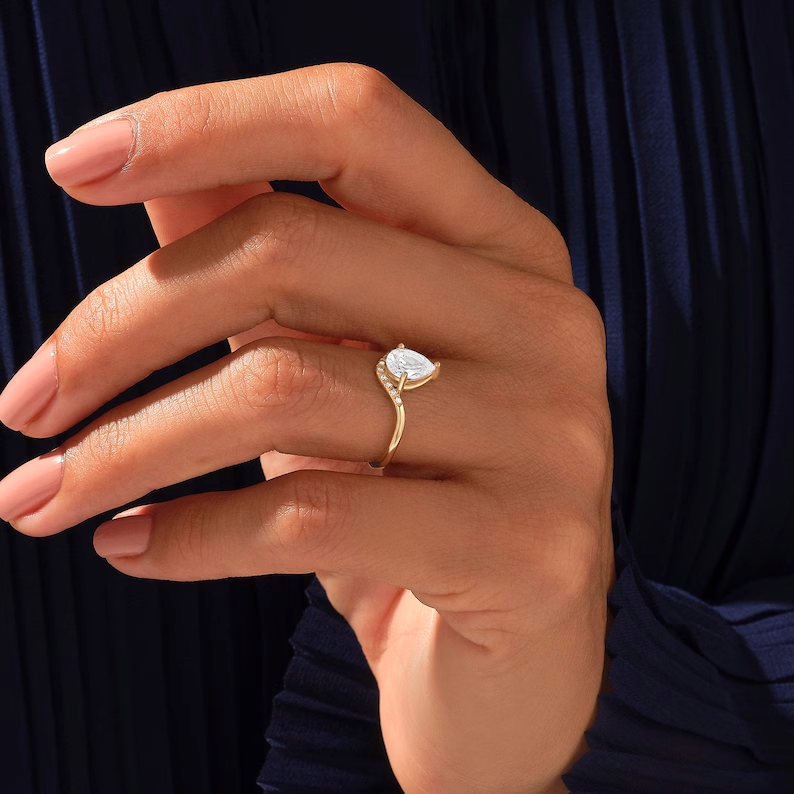 This 2.5 carat pear-shaped moissanite diamond engagement ring combines graceful curves with radiant shine—perfect for a unique and heartfelt love story.