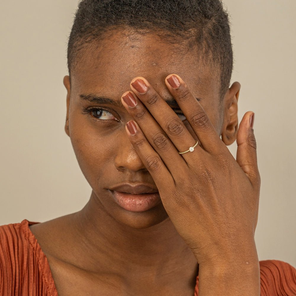 The craftsmanship is excellent, and the beaded design gives the ring a whimsical and chic feel.
