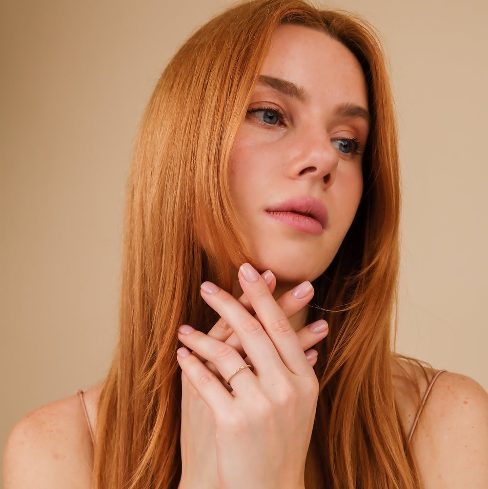 At just 1.1 mm wide, this dainty band is perfect for stacking or wearing solo for a refined and understated look. Whether gifted as a promise ring, worn as a modern wedding band, or added to your personal ring stack, it complements every aesthetic. Choose from yellow, white, or rose gold to suit your style—each crafted in solid 14K gold for long-lasting beauty.