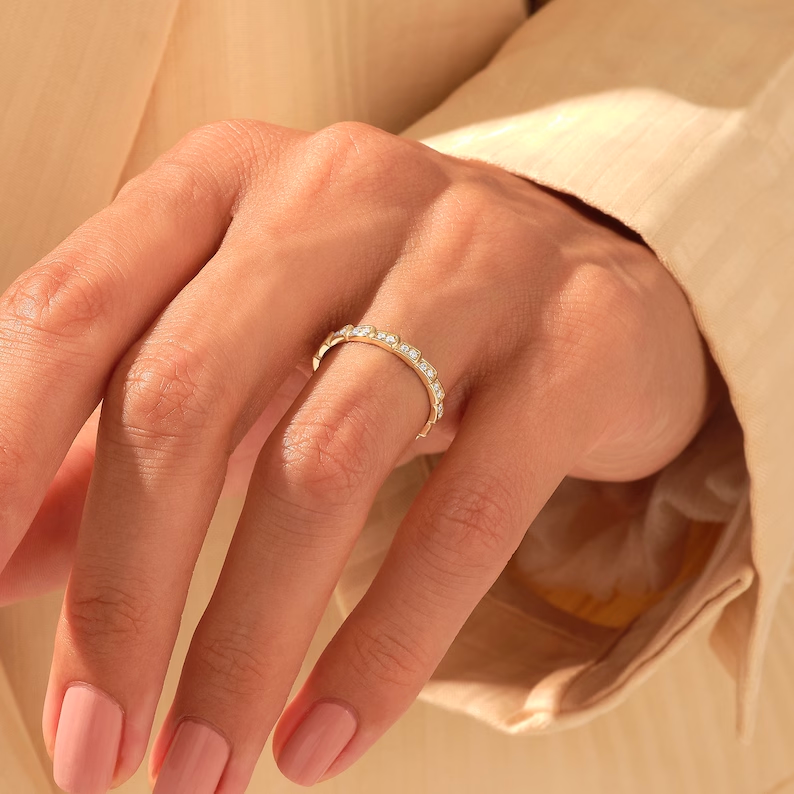 Elegant 14k solid gold eternity band with 0.32 ct GH color, VS-SI clarity natural diamonds. Perfect for stacking. BIS Hallmarked & GIA certified.