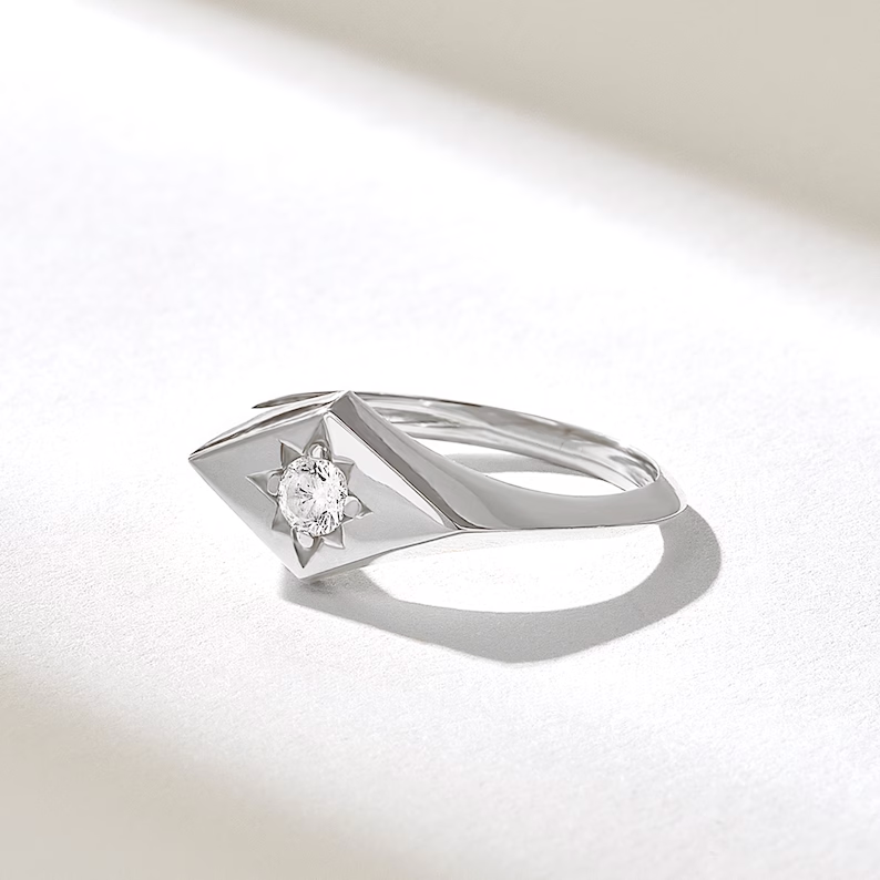 - Product Name: Rhombus North Star Signet Ring | 14k Solid Gold Celestial Ring | Tiny Diamond Ring