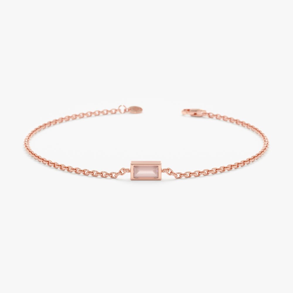 A delicate 14K solid gold bracelet featuring a beautiful rose quartz birthstone, offering a soft, romantic touch for a personal and meaningful accessory.