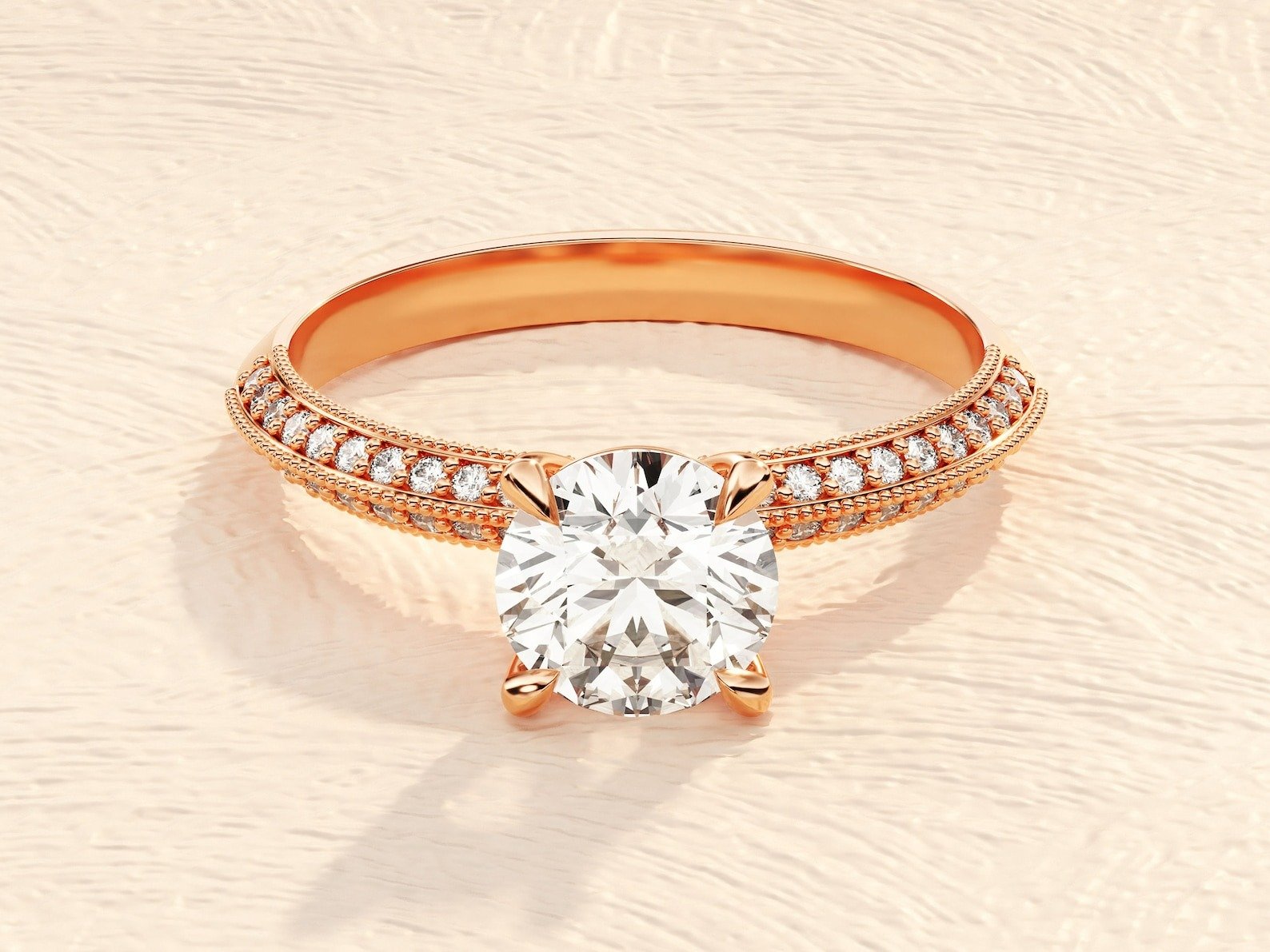 The Round Cut 1 ct Lab Grown Diamond Engagement Ring by The Karat Store offers timeless elegance and sustainability. Available in 18k gold with options for rose, yellow, or white gold, and featuring VVS-VS clarity and E-F colour diamonds, this ring is perfect for the eco-conscious couple.