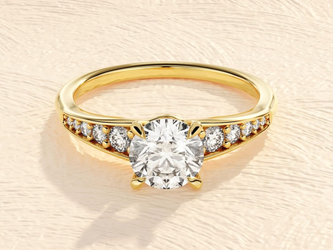 The Round Cut 1 ct Lab Grown Diamond Pave Setting Engagement Ring by The Karat Store combines timeless elegance and sustainability. Available in 14K gold with options for rose, yellow, or white gold, featuring a 1.00 ct lab-grown diamond with VVS-VS clarity and E-F colour. Perfect for the eco-conscious couple.