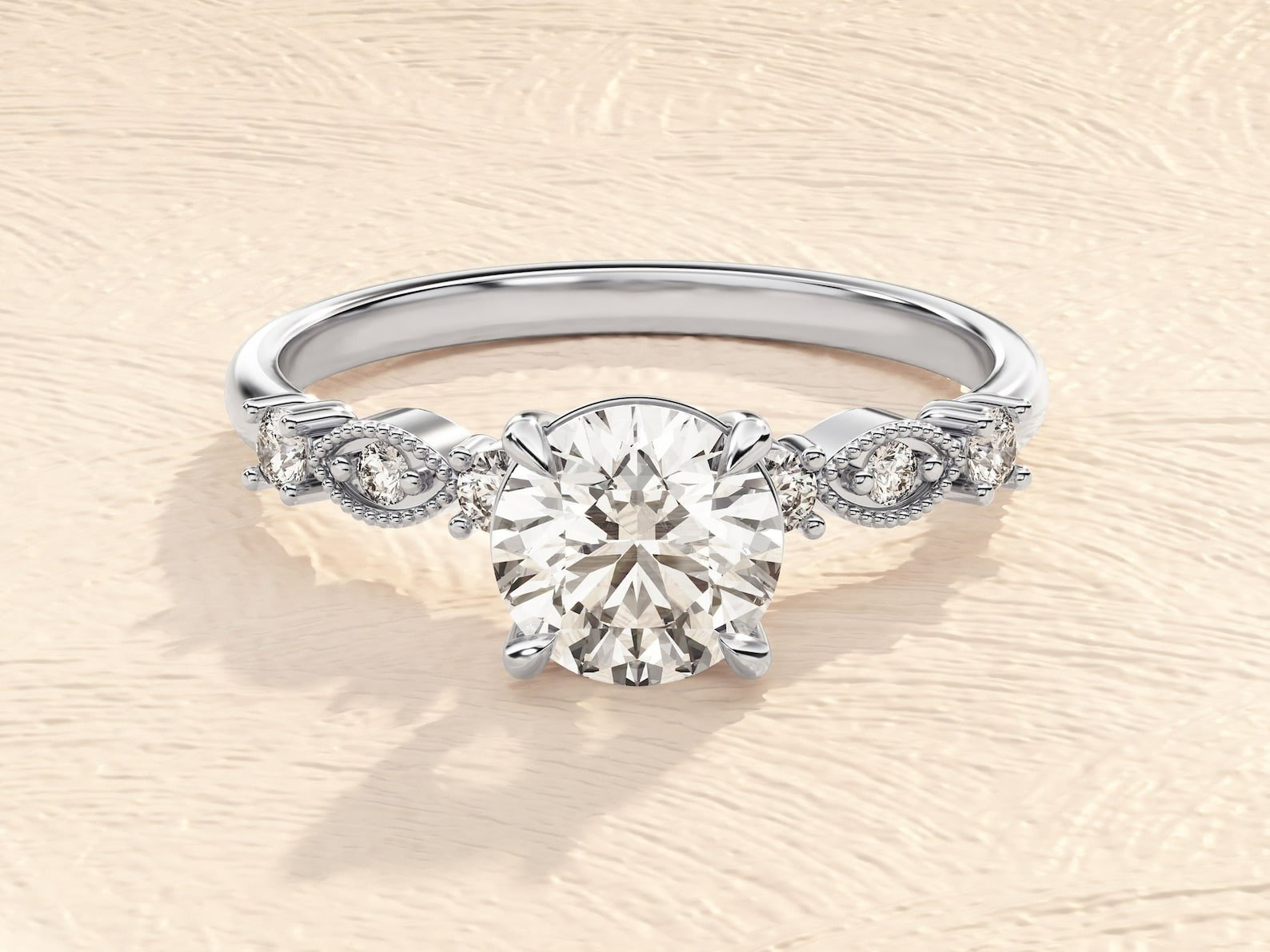 Our lab-grown diamonds boast VVS-VS clarity and E-F colour, ensuring exceptional brilliance and purity that rivals natural diamonds. The pave setting, adorned with smaller diamonds along the band, adds an extra touch of glamour and sophistication to this classic engagement ring.
