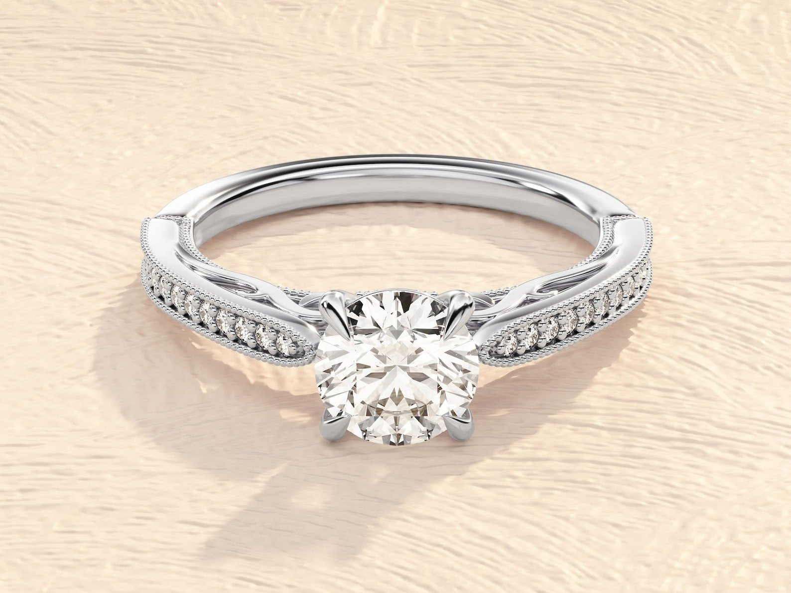 Round Cut 1 ct Lab Grown Diamond Pave Setting Engagement Ring