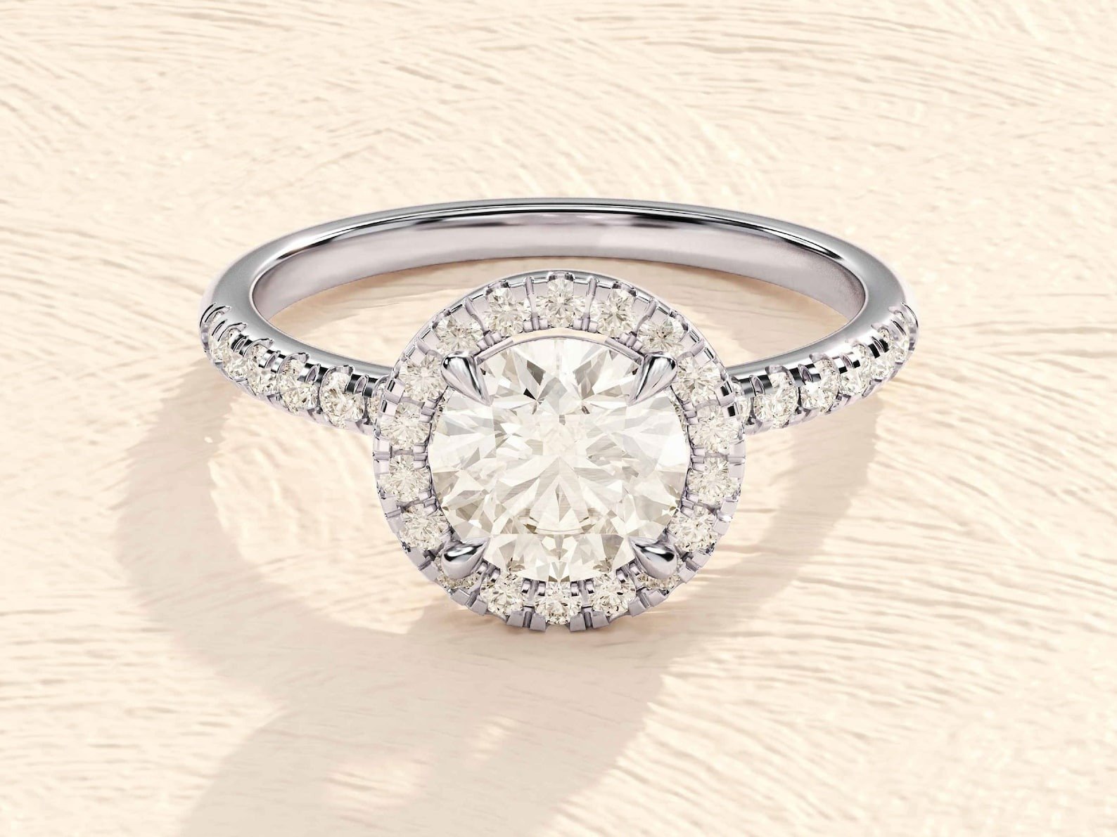 The Round Cut Halo Solitaire Ring 2 ct Lab Grown Diamond Engagement Ring is absolutely stunning. The diamond is brilliant and the halo design is very elegant.