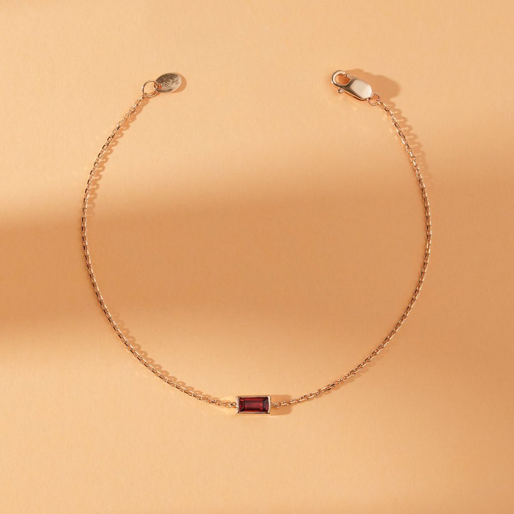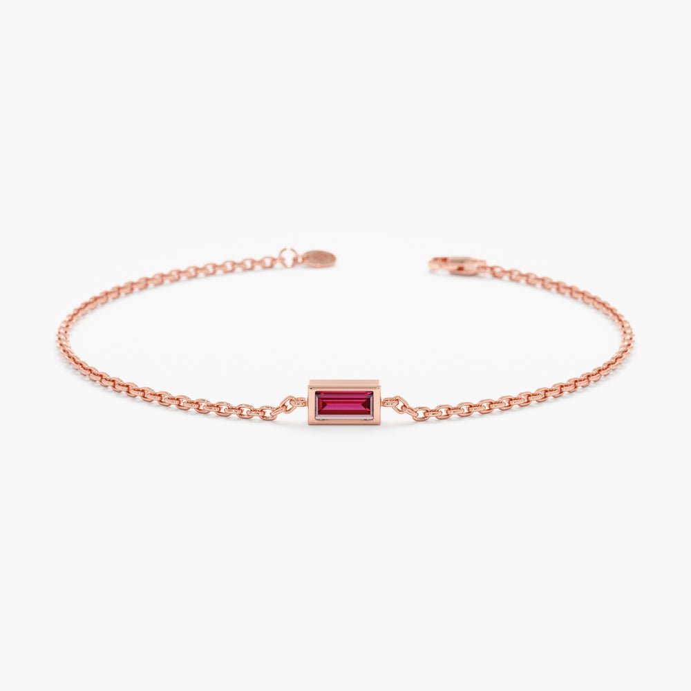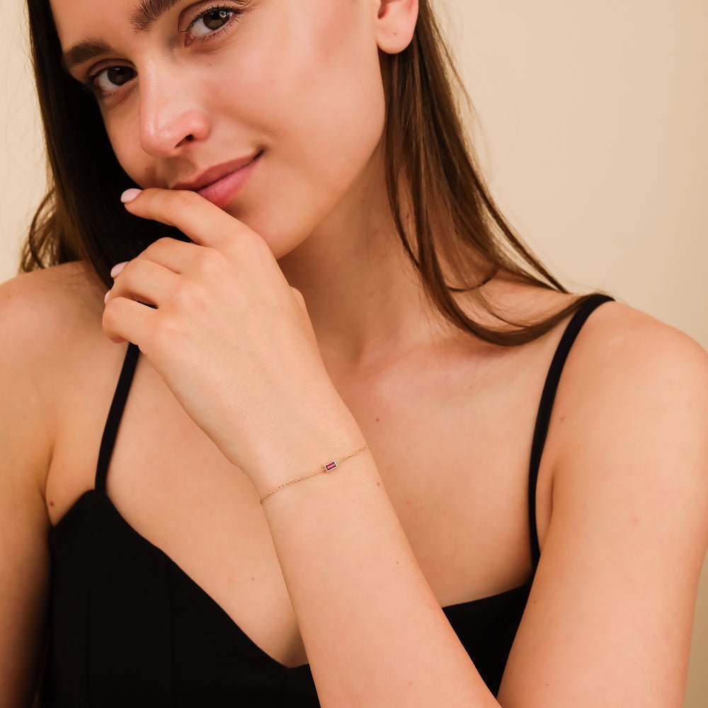 Whether worn alone as a statement piece or layered with other bracelets for a personalized style, our Ruby Birthstone Bracelet is sure to become a cherished addition to your jewelry collection, igniting your passion and enhancing your look with its radiant beauty.