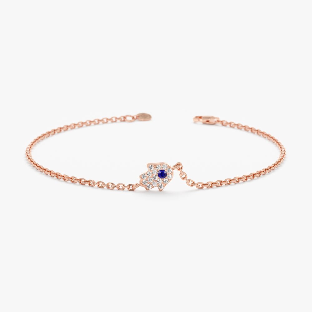 14K Solid Gold Sapphire and Diamond Hamsa Bracelet