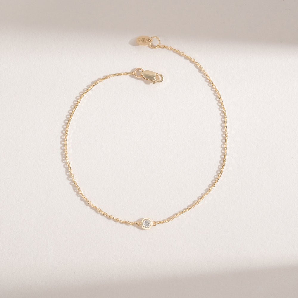 Embrace minimalistic elegance with our Single Diamond Bracelet. Featuring a sparkling diamond in a sleek bezel setting, it’s the perfect accessory for adding sophistication to any ensemble.