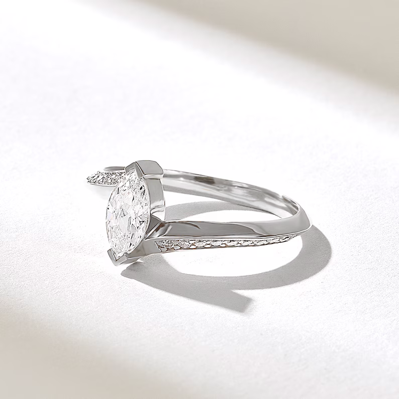 Modern elegance meets timeless romance in this Tension Set Solitaire Natural Diamond Ring, crafted in luxurious 18k solid gold. Designed for those who value unique engagement styles, this captivating ring features a brilliant 0.59 carat marquise-cut natural diamond, securely held in place by the sleek tension setting that gives the illusion of a floating stone.