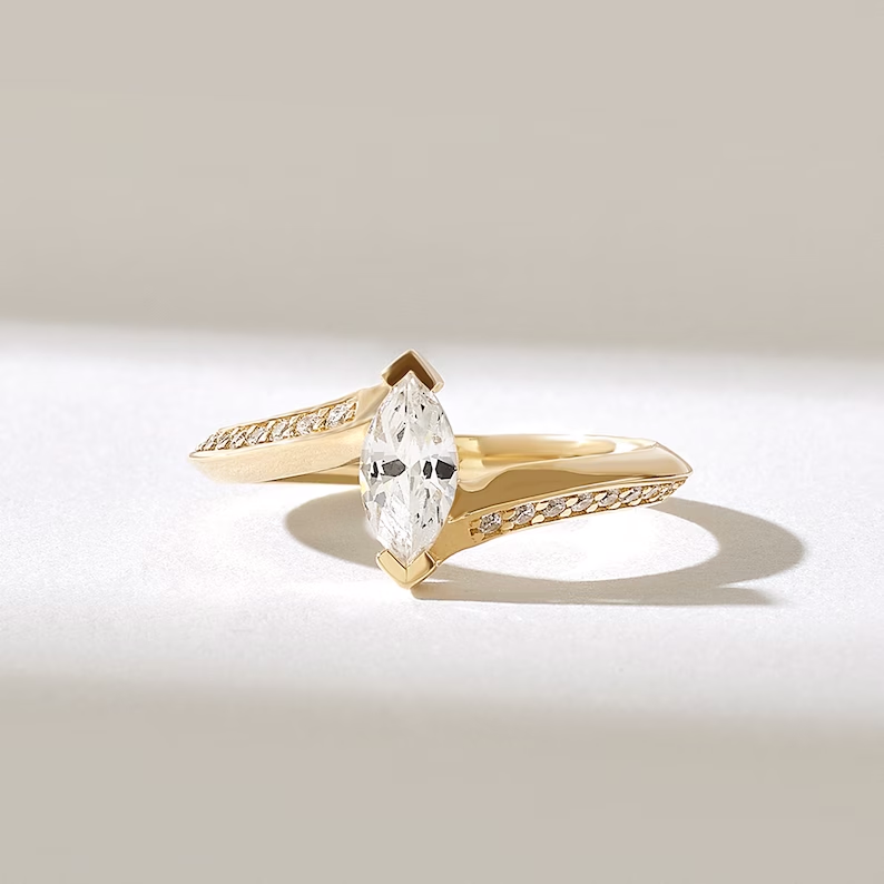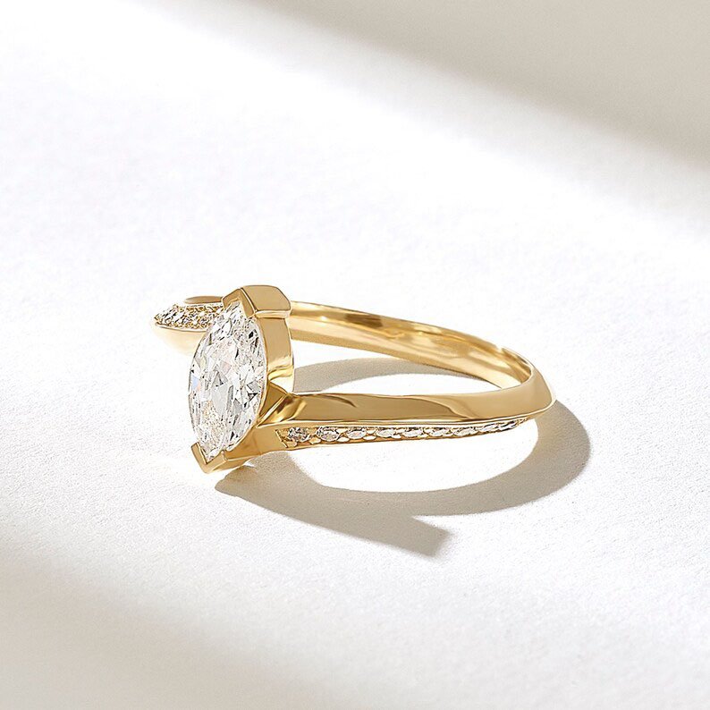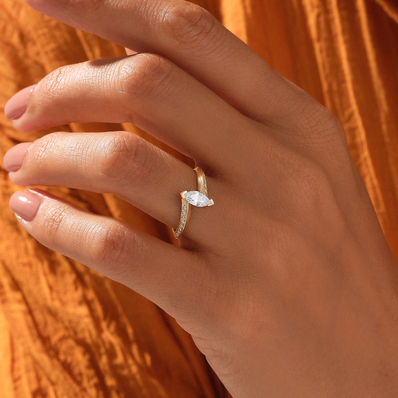 Tension Set Solitaire Natural Diamond Ring | 18K Solid Gold Marquise Engagement Ring