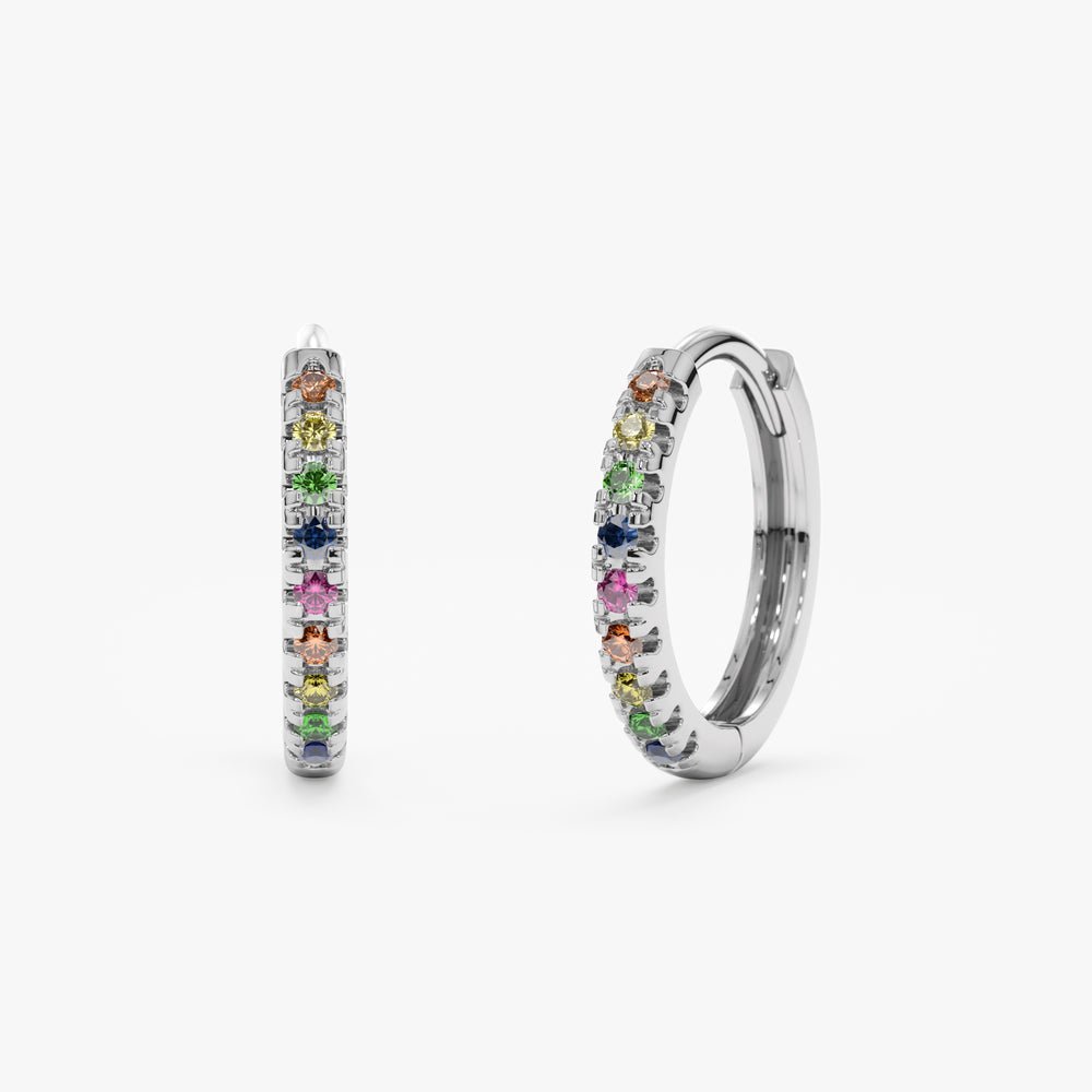 The rainbow sapphires on these thin huggies are vibrant and add a fun pop of color to any outfit.