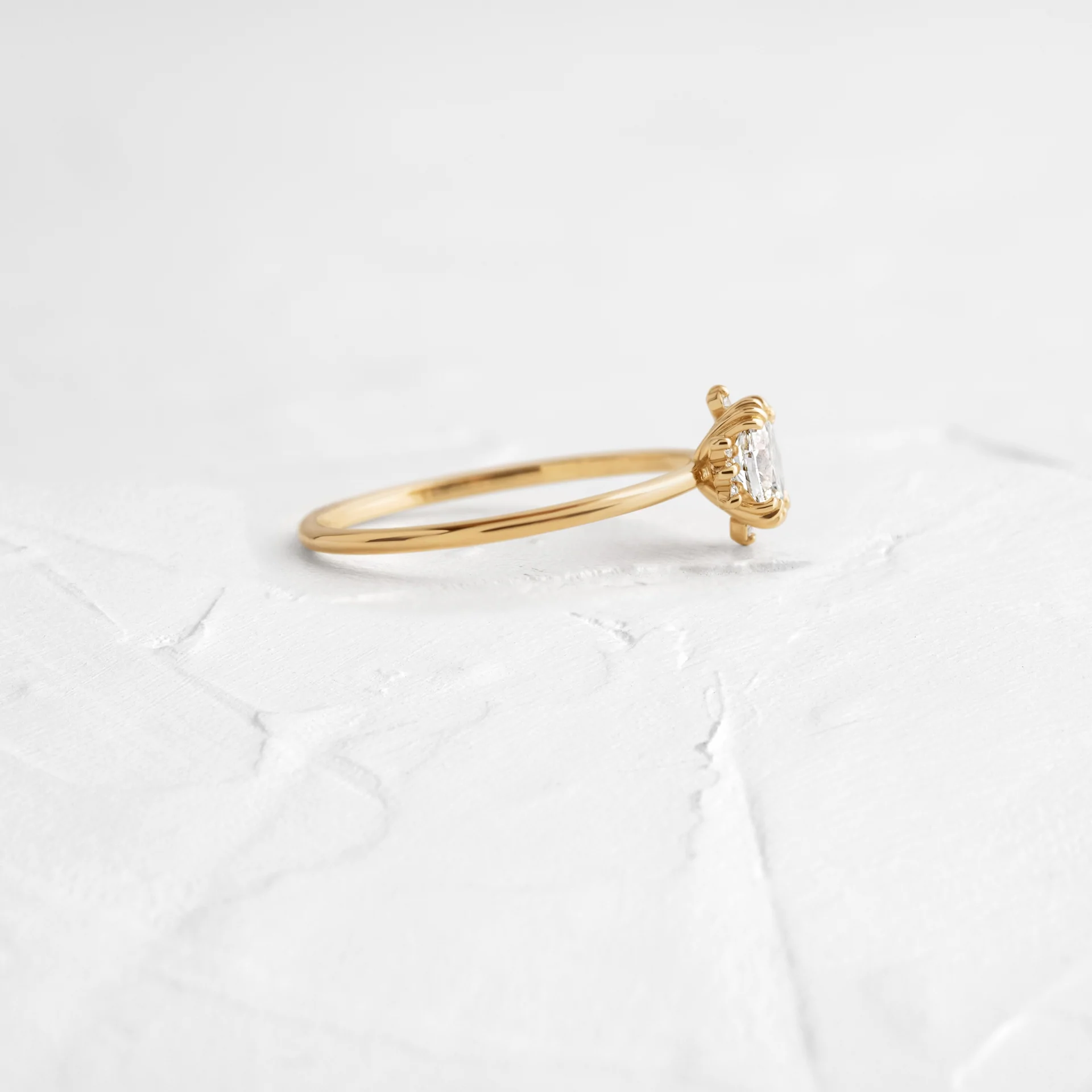 The Threaded Ring features a 0.32ct oval-cut diamond encircled by a shimmering halo, set on a sleek band for a refined and graceful look.