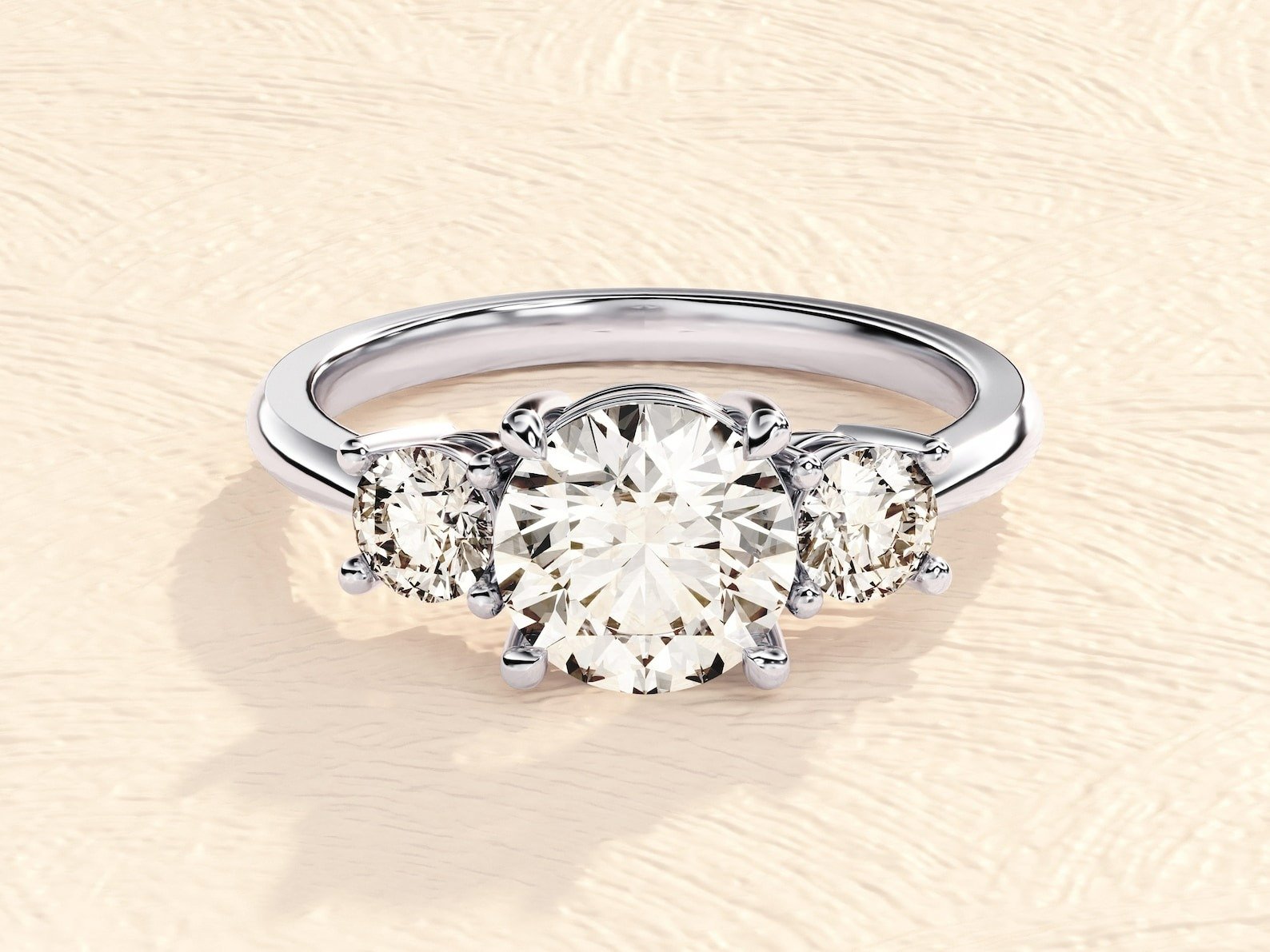 The tri-stone design on this anniversary ring is breathtaking. The 3 ct. diamonds are stunning.