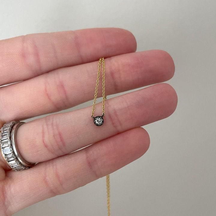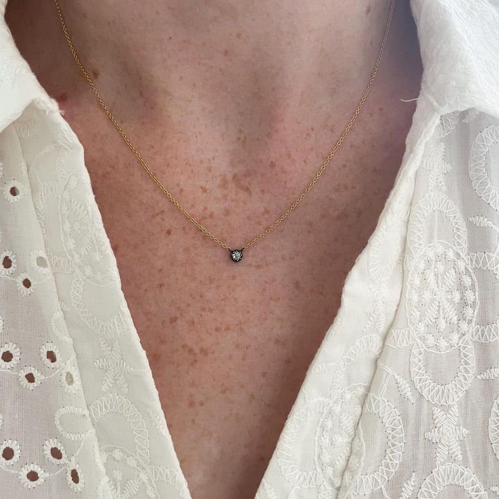 18k solid gold Natural Diamond necklace Old Mine Cut Solitaire Necklace