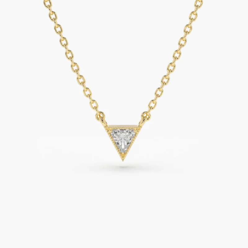14K Gold Triangle Cut Natural Diamond Solitaire Necklace