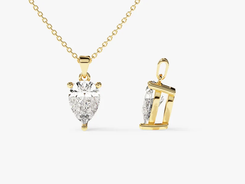 14K Solid Gold Lab Grown Pear Diamond Pendant 0.5CT Diamond Pear Cut Solitaire Necklace