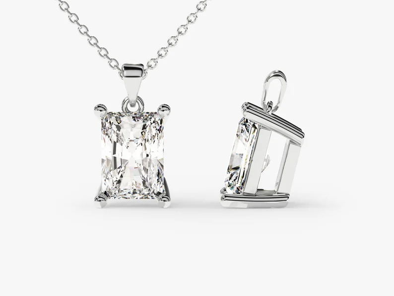 18k Solid Gold Radiant Natural Diamond Pendant Radiant Cut Solitaire Necklace 0.5 CT