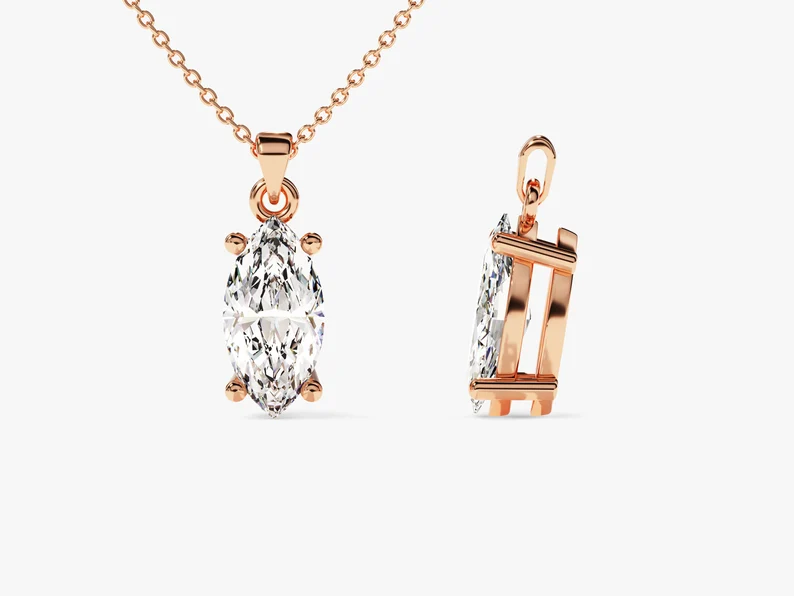 14K Solid Gold Natural Diamond Pendant Marquise Cut Solitaire Necklace 0.5 CT Diamond