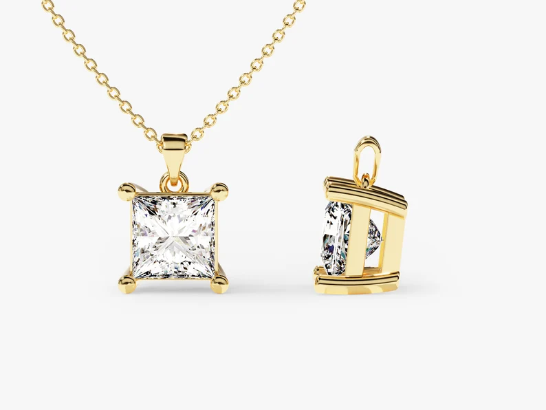 18k Solid Gold Lab Grown Princess Diamond Pendant Princess Cut Solitaire Necklace 0.5 CT
