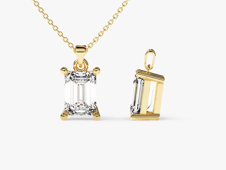 14K Solid Gold Lab Grown Asscher Diamond Pendant Asscher Solitaire Necklace 0.5CT Diamond